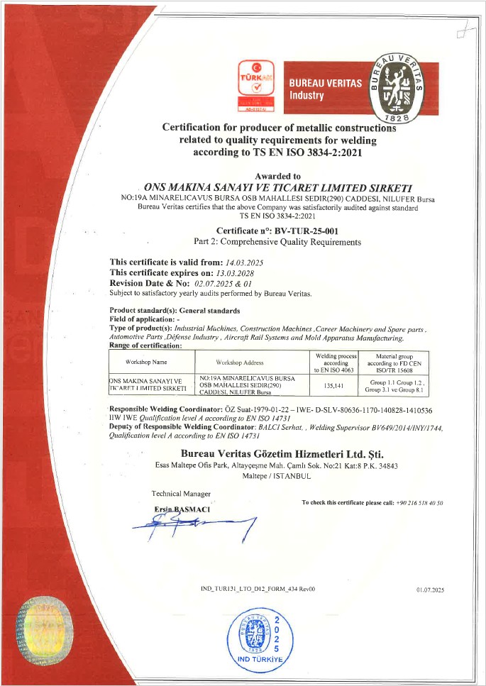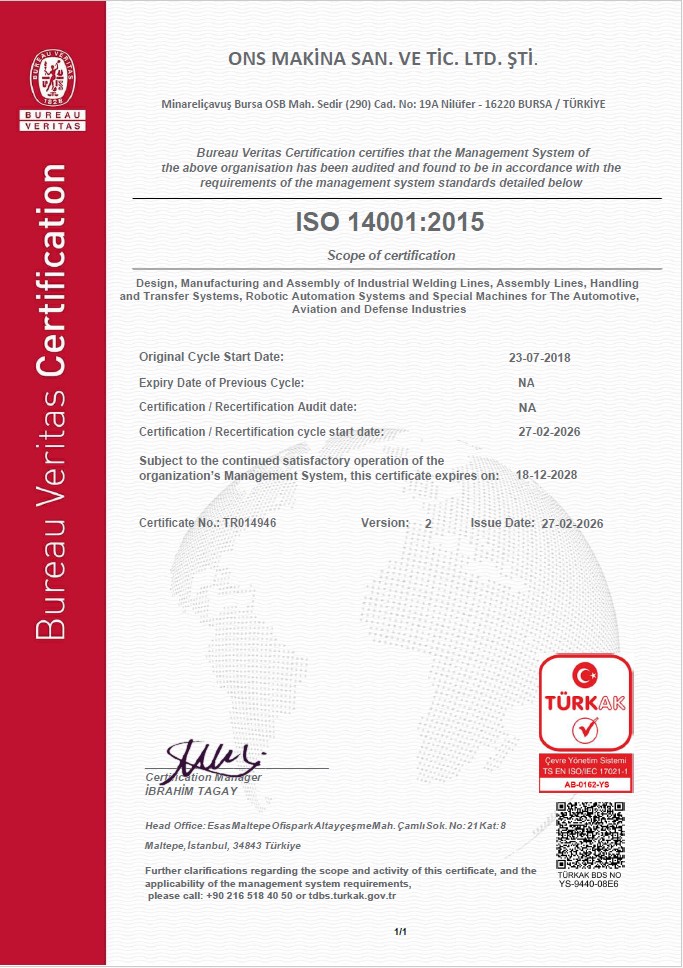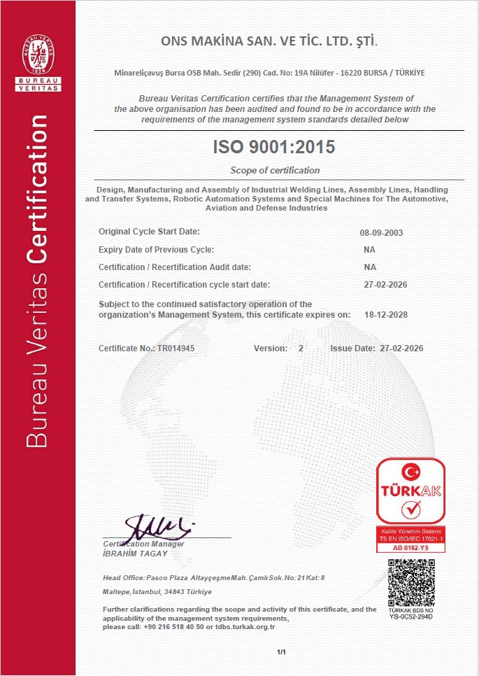 ONS Makina, inovasyon gücünü artıran Endüstri 4.0 tabanlı mühendislik çözümleriyle ve 100'ün üzerinde yetenekli uzman kadrosuyla müşterilerine nitelikli hizmet sunmaktadır.